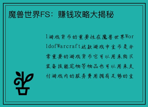 魔兽世界中有一个完善的经济系统,玩家可以通过充分利用这个系统来赚取金币。比如,玩家可以利用职业技能和专业技能来制造和出售物品,或者利用游戏内的交易系统进行买卖。还可以参与游戏内的经济活动,如拍卖行竞拍、租赁房屋等,来赚取金币。